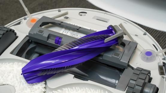 但实际测试能够正常的看到,效果很直观,在地上放置了毛发,使用机器人清洁后,打开云鲸 J4的主机底部的滚刷查看,真的绝对没毛发残留,J4的滚刷完美通过考核。